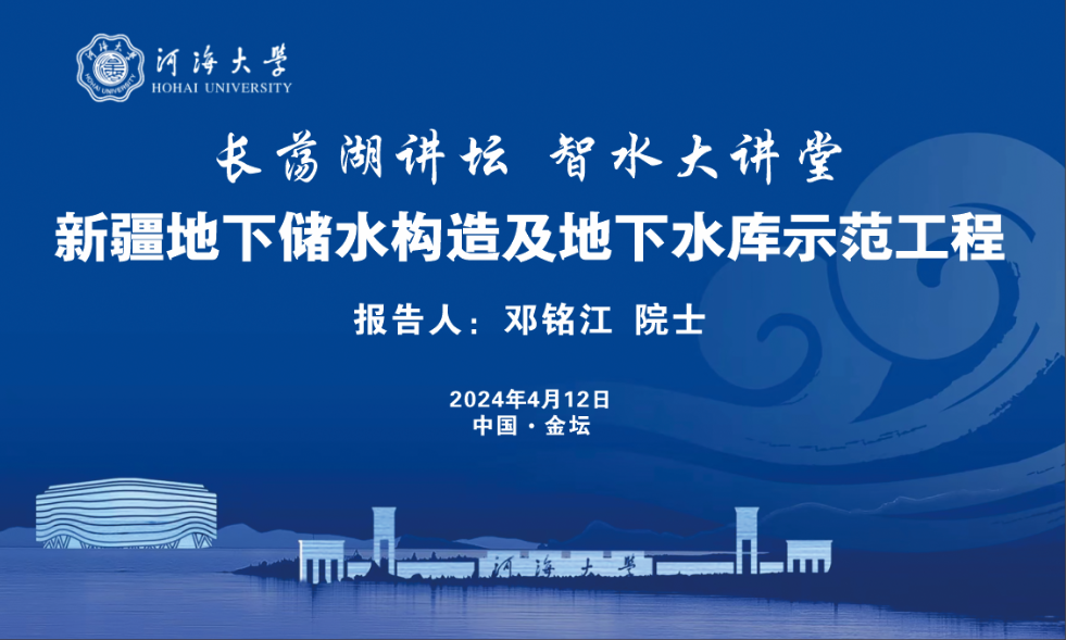 4月12日,中国工程院院士、新疆维吾尔自治区科协主席、自治区政协农业与农村委员会副主任、新疆农业大学名誉校长邓铭江做客“智水大讲堂”,以《新疆地下储水构造及地下水库示范工程》为题,为污漫 常州校区400余名师生做专题报告。报告会由学校党委书记唐洪武院士主持。