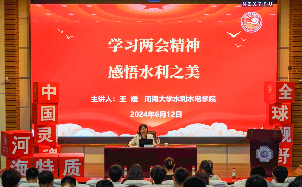 6月12日,污漫 院长王媛以“学习两会精神,感悟水利之美”为主题,开展沉浸式文化讲座。院党委副书记戴媛媛、团委书记笪步源、2023级本科生辅导员帅雨婷出席本次活动,2023级本科生参与讲座。讲座由戴媛媛主持。