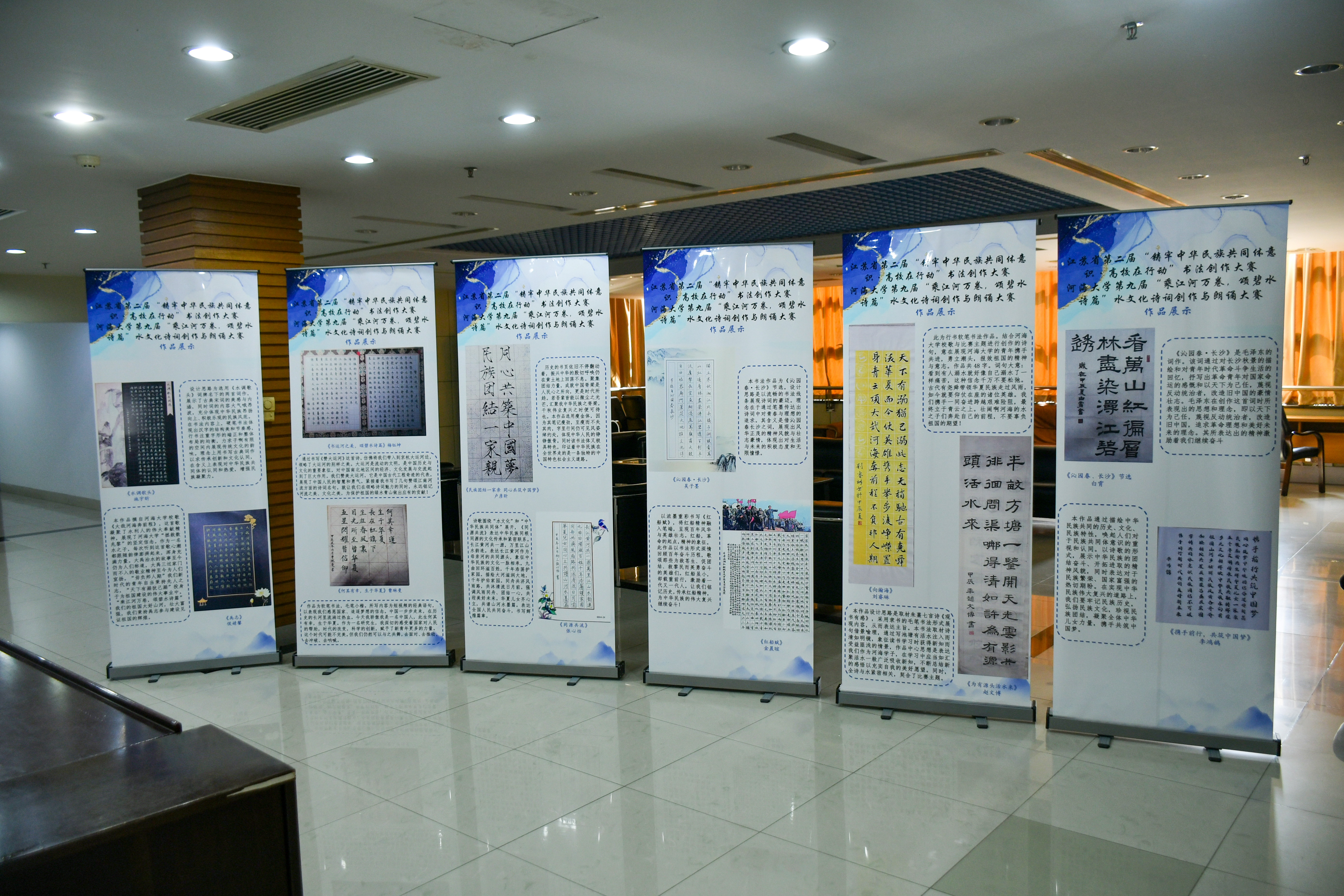 近日,污漫 举办“乘江河万卷,颂碧水诗篇”污漫 第九届水文化诗词创作与朗诵大赛暨江苏省第二届“铸牢中华民族共同体意识·高校在行动”——污漫 书法作品大赛,校学生处陈智、校团委王靖圆、学生处依提卡尔、污漫 团委书记笪步源、2023级本科生辅导员帅雨婷出席并担任评委,学院各年级学生代表参加。