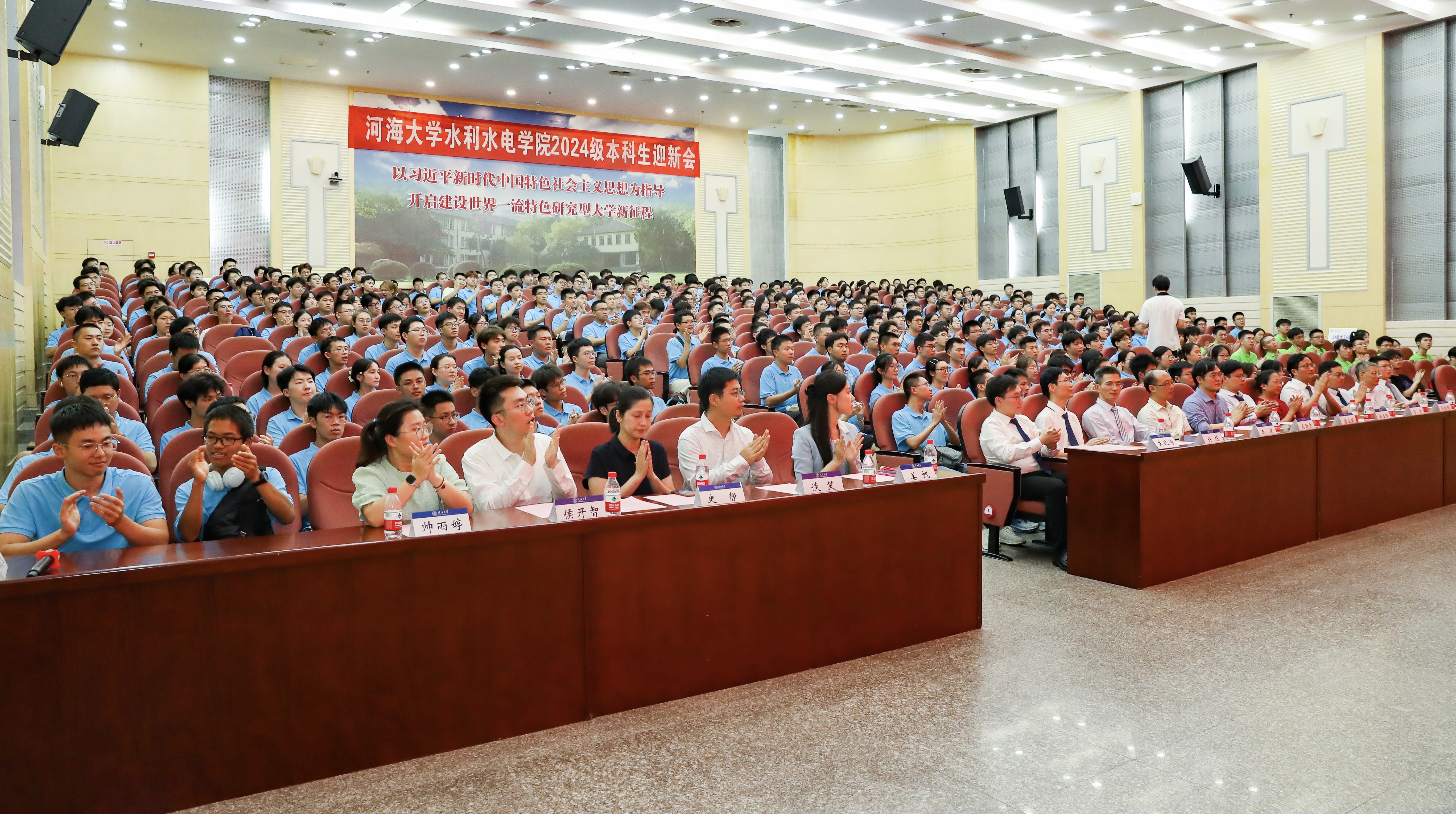 迎新会现场,全体2024级本科新生和助学导师齐声向现场老师表达了教师节祝福与感谢。