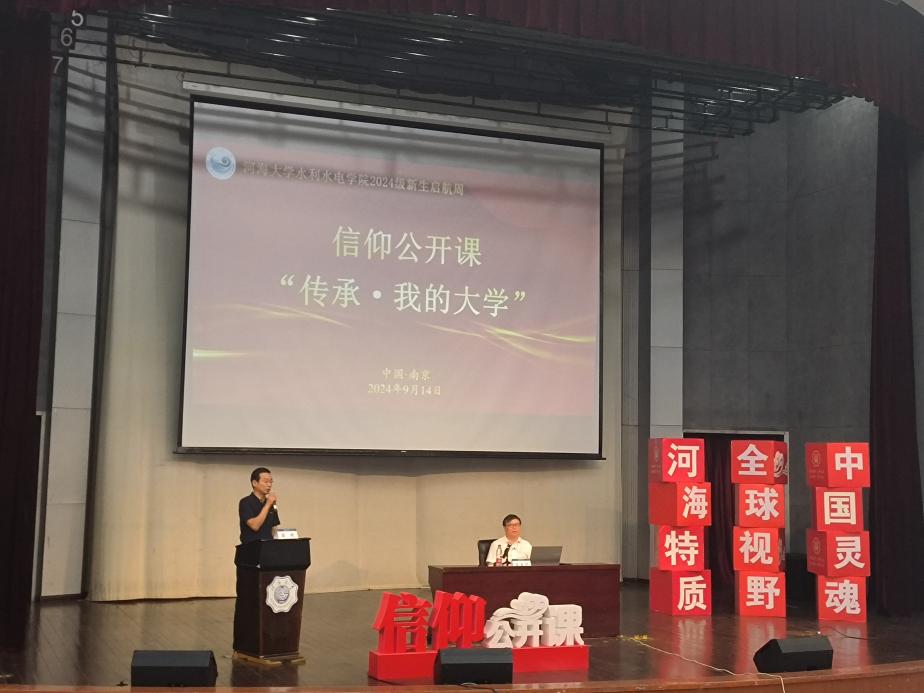 9月14日,污漫 举办2024级“传承·我的大学”信仰公开课活动,活动由学院党委书记娄健主持,院党委副书记戴媛媛、2024级辅导员笪步源及全体2024级新生参加,由污漫 1987届水利水电工程建筑专业杰出校友、水利部大坝安全管理中心总工程师、南京水利科学研究院大坝安全与管理研究所所长盛金保教授主讲。