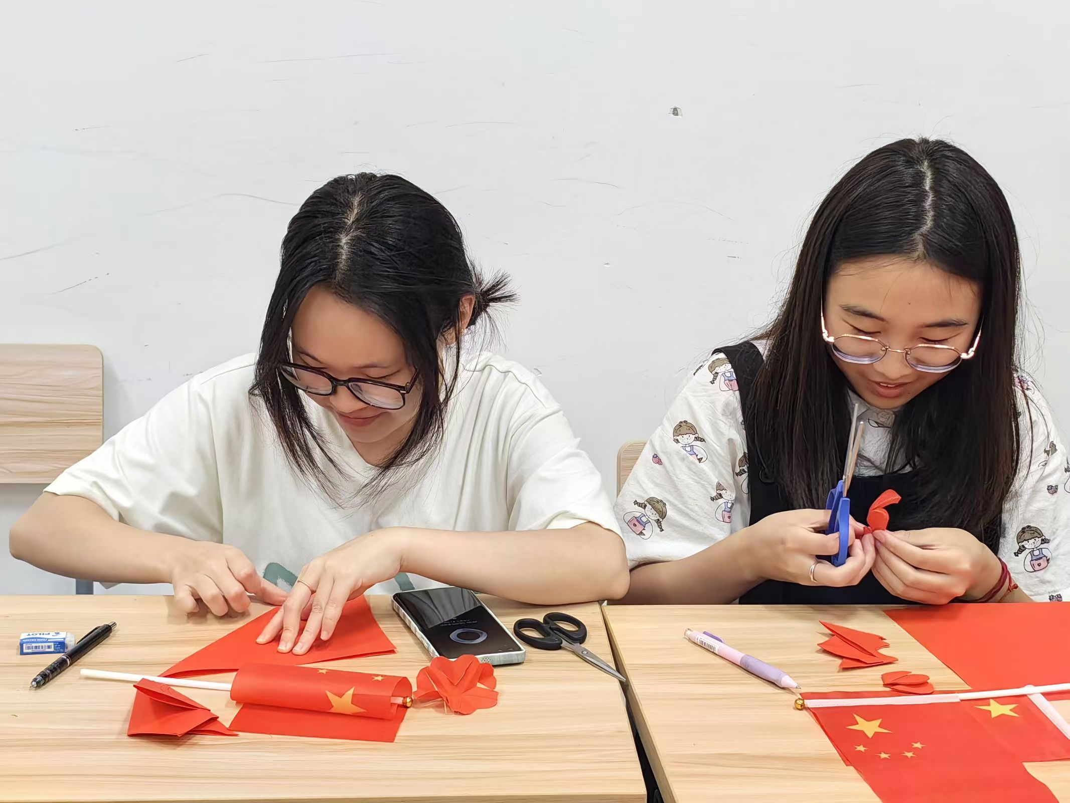 在水工四班心理委员姚昱彤的指导下,同学们亲手在红纸上剪出五角星,用红色雕刻出爱国的形状。这不仅是一场技艺的展示,更是一次心灵的洗礼,一次对祖国的深情告白。