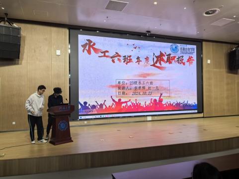 2023级水工六班班长赵一凡、团支书李卓烨围绕“水工六班23年度班长团支书述职”主题进行汇报。他们以坚定的领导力和出色的沟通能力,成功团结班级成员,创造了良好的学习氛围。