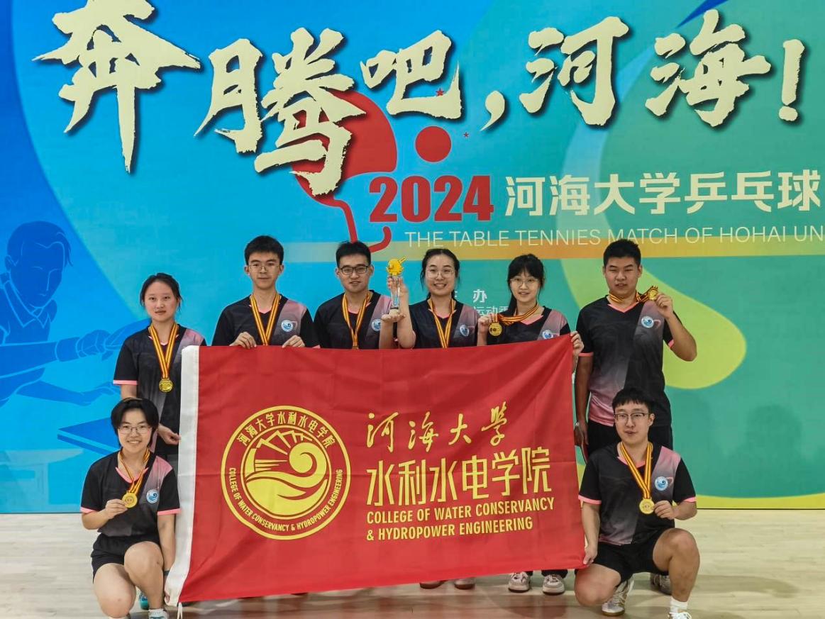 11月9日至10日,2024年“河海杯”乒乓球比赛在常州校区的体育馆火热上演。赛前,通过院内乒乓球选拔,本科生冯越、李仲然、研究生赵旭、张姚、邢容、李奕函、戴诗菡和岳诗涵作为队员参赛。通过两天的激烈竞争,污漫 乒乓球队员们斗志昂扬,一路披荆斩棘,荣获2024年“河海杯”乒乓球比赛冠军。