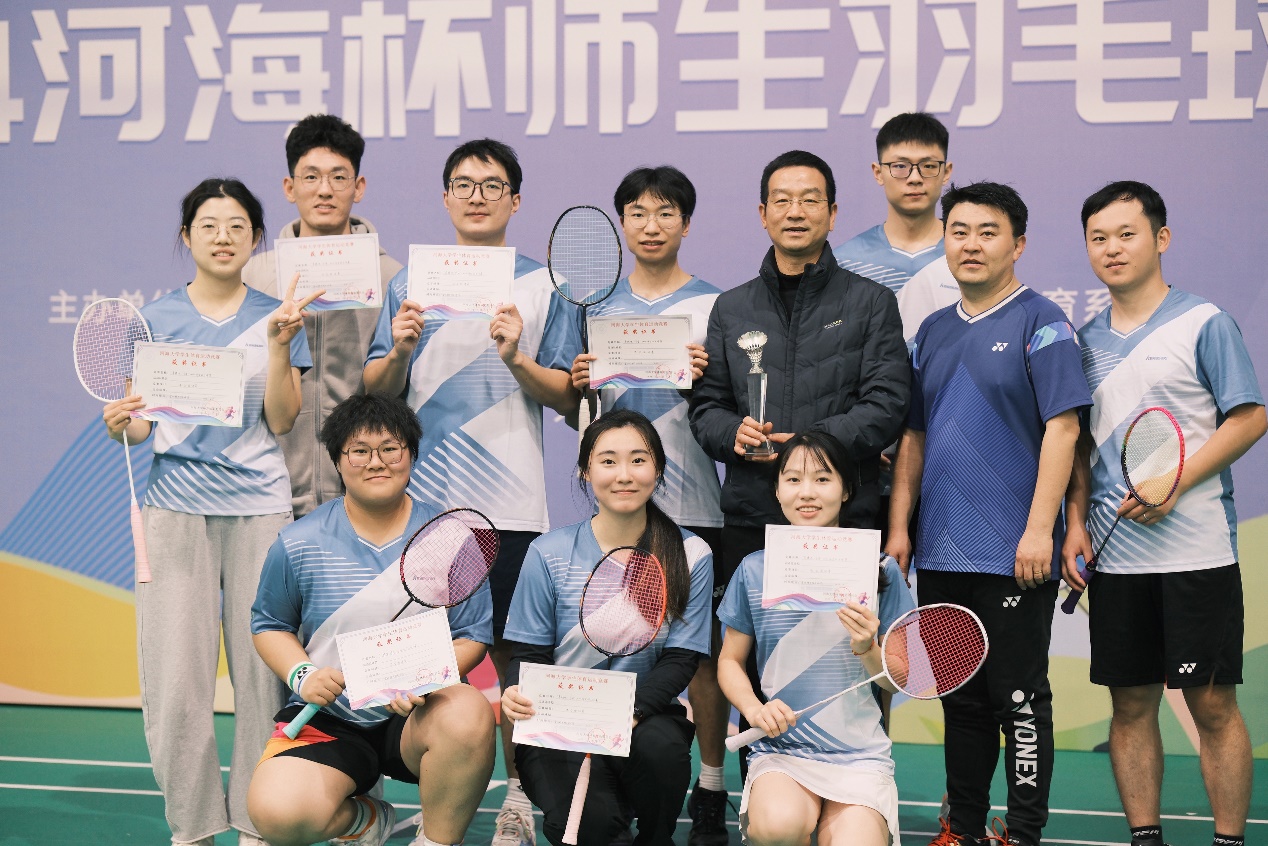 2024年12月7日,“河海杯”师生羽毛球比赛在常州新校区落下帷幕。本次赛事中,污漫 党委书记娄健担任领队,刘晓青、罗玉龙、林青炜三位教师参赛,学生队员为汤瑞、胡博扬、洪豆、刘顺然、周冰逸、陈静茹、向海岚,涵盖污漫 本硕博各级学生。本次比赛共有21支来自不同学院的代表队参加,参赛团队历经混双、男双、女双、男单、女单五个赛程,采取团体赛五局三胜制。我院羽毛球队表现出色,经过多轮激烈对决,一路披荆斩棘进入决赛,斩获亚军!