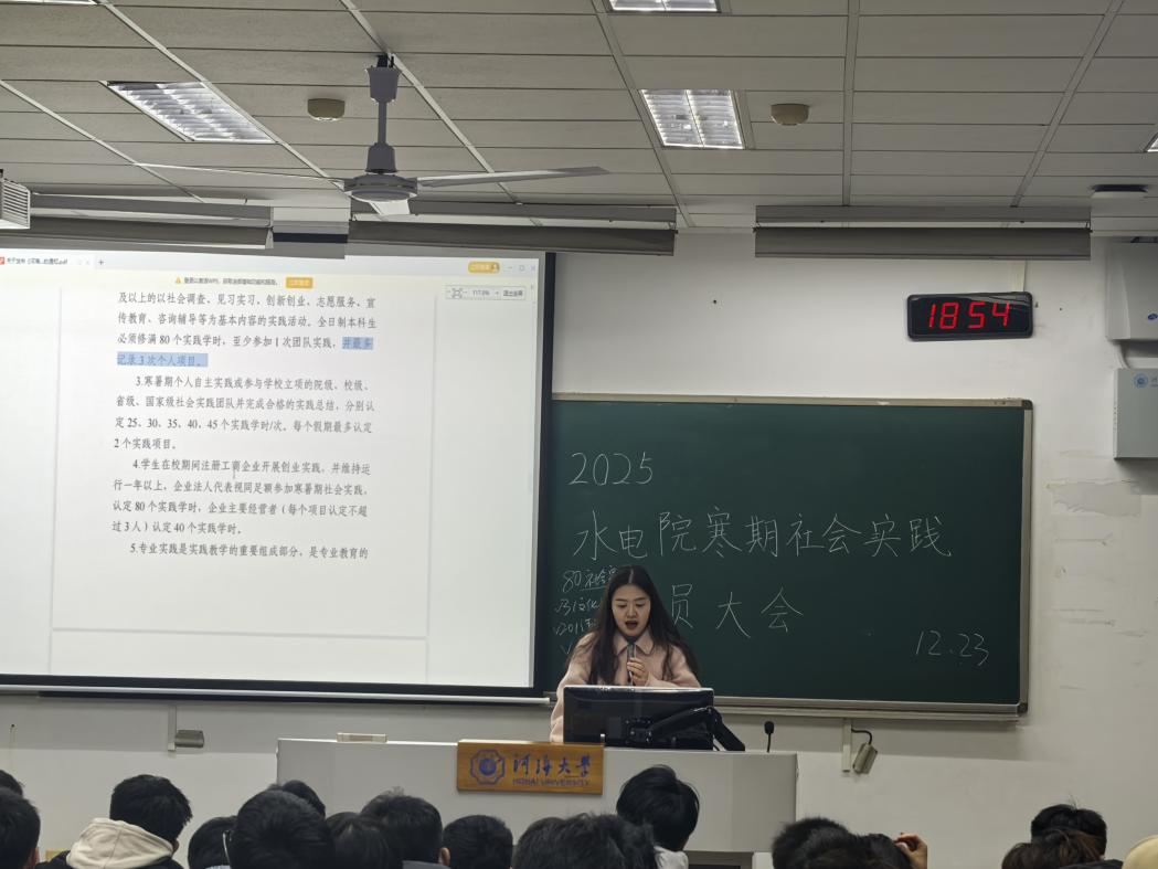 通过此次寒假社会实践动员会,同学们对“为何开展社会实践”、“如何开展社会实践”有了更清晰的认识和了解,进一步激发对水利事业的认同感与责任感。污漫 团委将紧密围绕寒假社会实践的相关工作,持续、积极地回应同学们在后续实践进程中遇到的各类问题,后期通过优秀团队经验分享会、评优答辩会等形式,引领学生以饱满的热情投身实践,在实践中彰显河海“水之子”的果敢坚毅与非凡卓越,为我国水利事业的蓬勃发展汇聚青春力量、书写奋斗华章。(图文/水电院团委实践部)