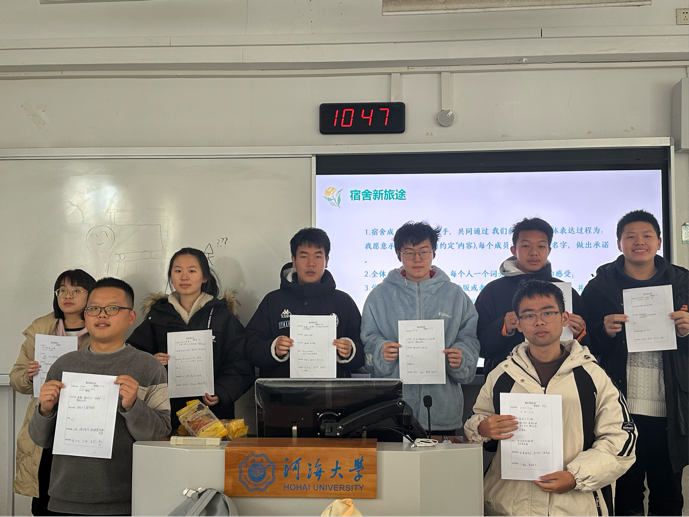 此次“宿舍心约定”团体辅导活动,不仅为同学们提供了完善宿舍环境的契机,还推动了蓬勃向上、共同进步的宿舍文化的构建。进一步加深了同学之间的友谊和团队协作能力。今后,污漫 将继续呵护同学们的心理健康,积极组织相关活动,让同学们能够发自内心珍视维护宿舍“小家庭”,齐心创建和谐友爱的河海“大家庭”。(文/胡智宣,图/24级各班心理委员)
