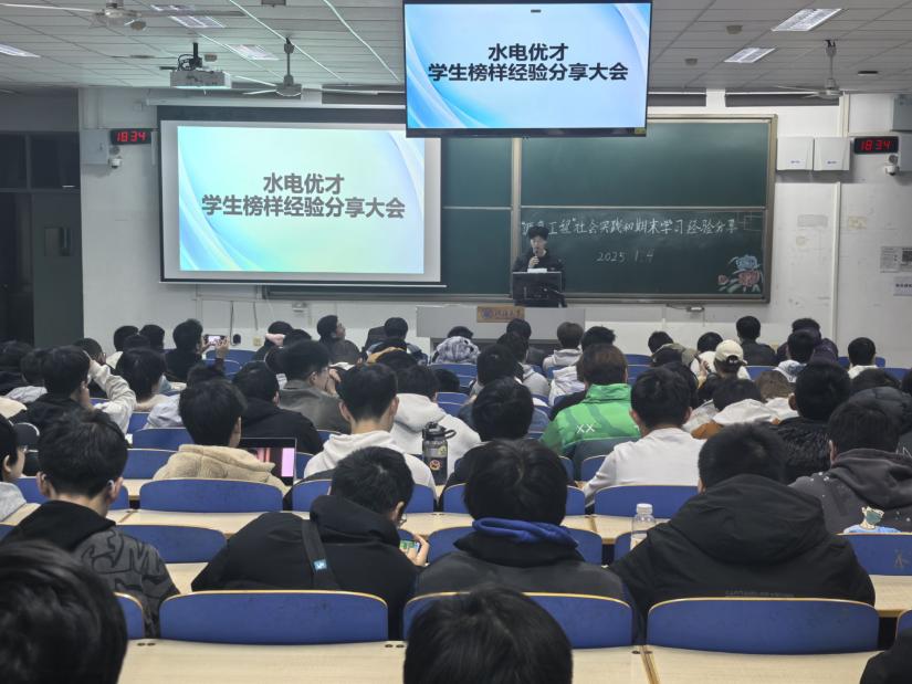 开展“水电优才”学生榜样经验分享会。学院团委书记兼2024级辅导员笪步源,2024级全体本科生、院团委实践部成员参加。分享会邀请22级苗董阳钦、23级于雪琪,朱雨馨,曾湉分别围绕期末学习经验和“源泉工程”社会实践为24级学生提供经验和帮助。