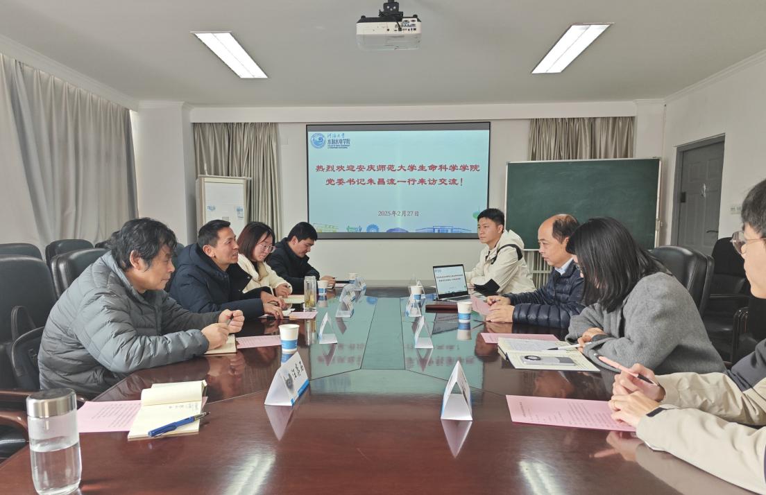 2月27日下午,安庆师范大学生命科学学院党委书记朱昌流一行来污漫 座谈交流。水生生物保护与水生态修复安徽省高等学校工程技术研究中心主任于道平及其团队成员陈敏敏、连玉喜、汪存石,学院副院长冉启华、副院长俞晓东,院党委副书记戴媛媛,水力学及河流动力学所教师惠辞章,研究生辅导员陈思思以及水力学及河流动力专业博士研究生王昊参加了本次座谈会。