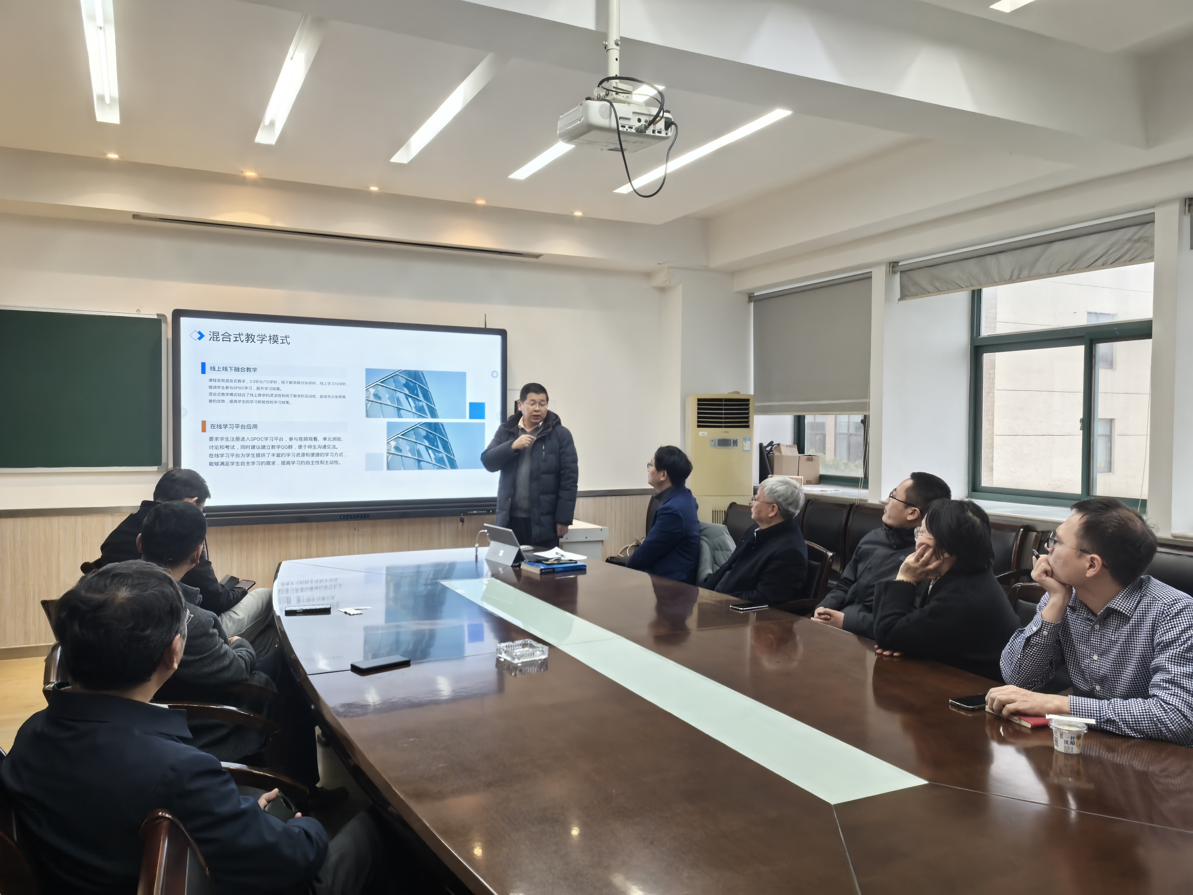此外,团队老师们就线上教学资源建设、学生学习管理等方面展开了深入的探讨。为推进智慧课程建设,团队计划引入人工智能助教系统。该系统将为学生提供个性化学习支持,帮助学生更好地理解和掌握课程内容,提高学习效率。同时,老师们还提出了慕课视频更新计划,后续将组织实施,以确保课程资源的时效性与实用性。