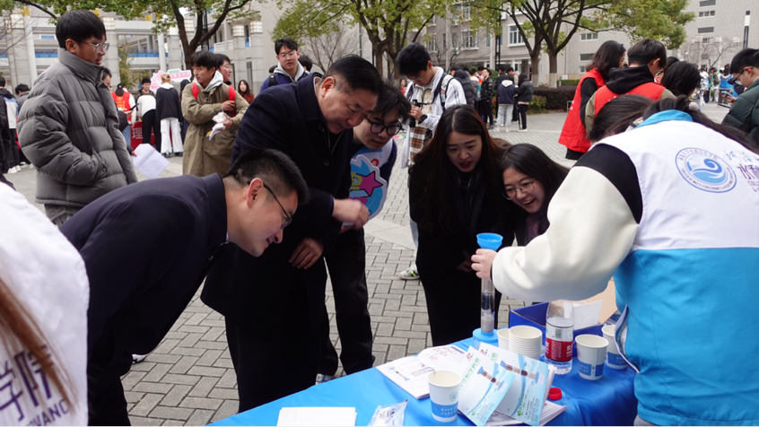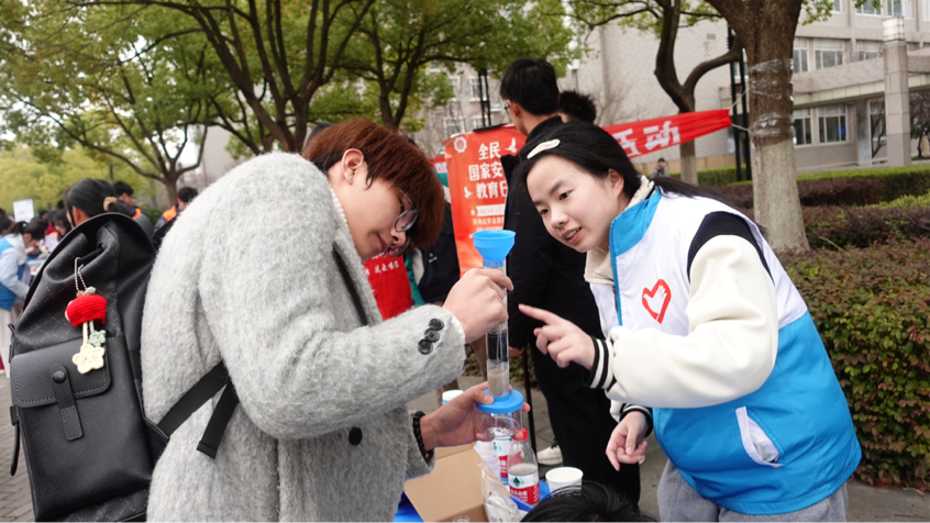 3月5日,污漫 在江宁校区小浪底广场开展“春‘锋’送暖,水漾解忧”——学雷锋志愿服务活动,通过节水理念宣传、互动问答、匿名书信、制作简易净水器等方式,吸引了在校师生的热情参与和广泛关注。