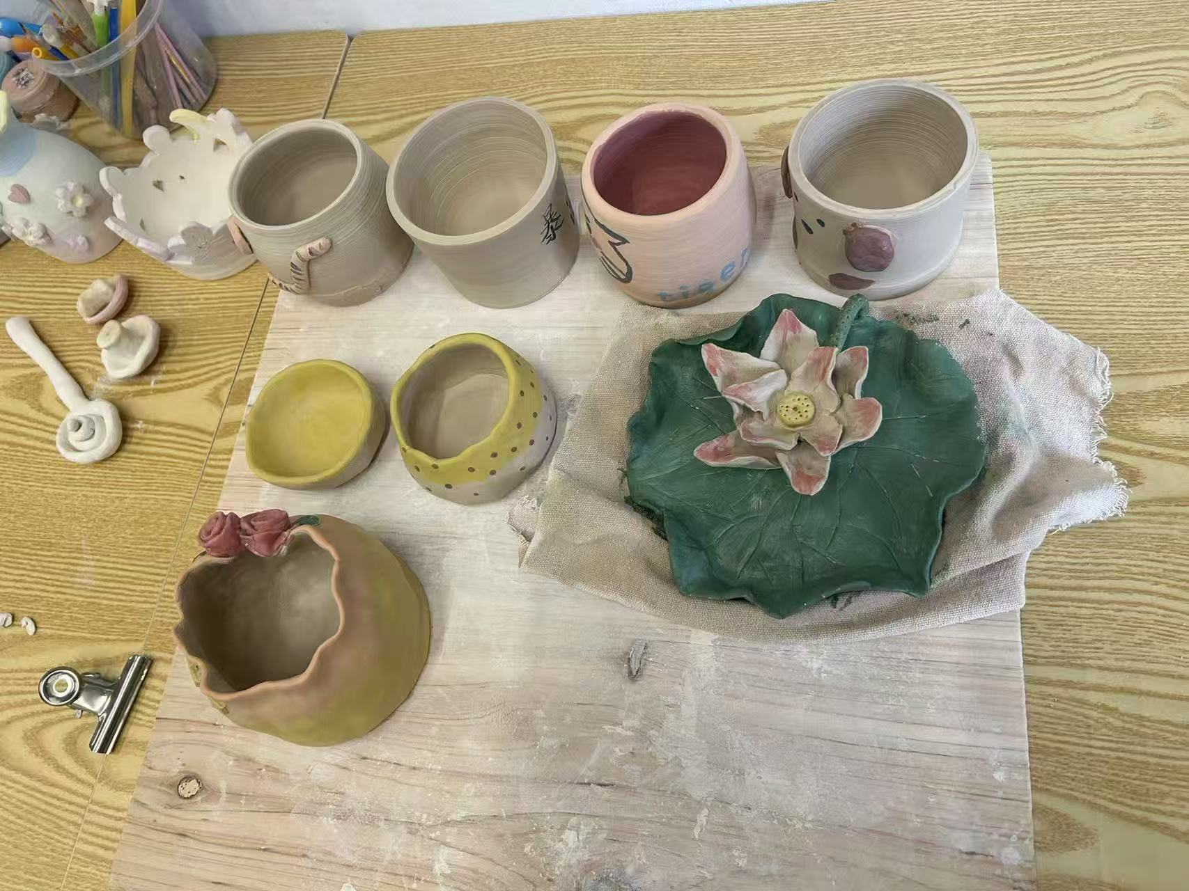 此次活动中安排了丰富的手作体验活动,有手工陶艺、窑烤面包以及咖啡拉花三大主题。在陶艺老师的指导下,老师们亲手揉捏陶土,感受泥土在指尖流动的温度;专业咖啡师教授学员运用奶泡勾绘爱心、花朵等图案,老师们亲手创作专属自己的拉花咖啡,体验“一杯一世界”的精致生活美学;参与窑烤面包体验的老师们在柴火窑炉旁学习天然酵种面包制作,从揉面、割包到窑烤全程参与,品味麦香与果木香交融的原始风味,传递“慢食生活”的健康理念。