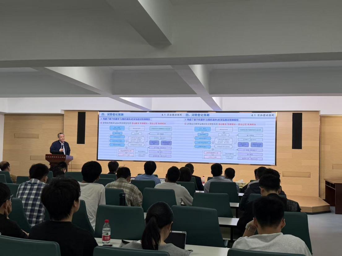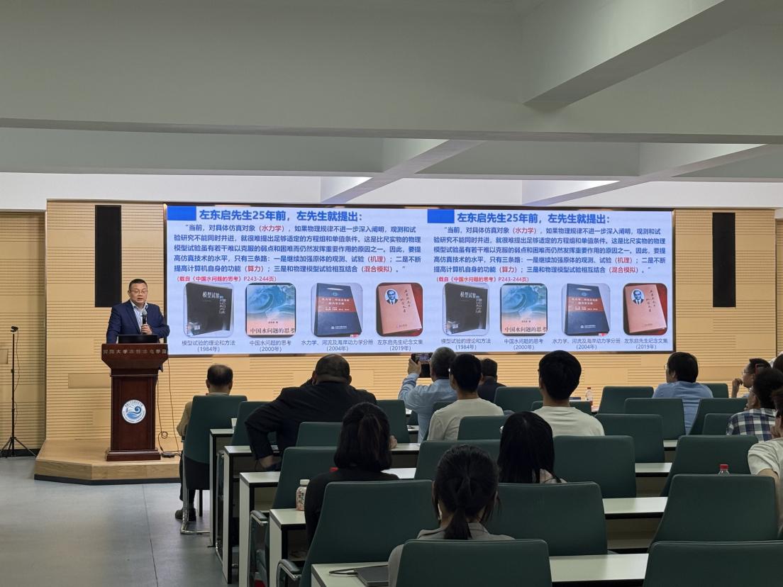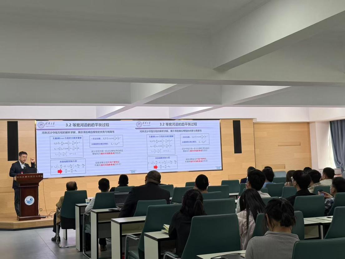 在特邀专家汇报环节,清华大学傅旭东教授作《山区河流形貌动力学发展与应用》主题报告,指出山区河流水沙输移机制特殊,提出了统一描述山区—平原河流的阻力公式,揭示了推移质魔术沙效应的物理机制,阐明了地震地质灾害对山前河流演变的系统影响,为山区河流治理提供了新的理论支撑;武汉大学夏军强教授作《黄河下游游荡段河势变化预测技术》主题报告,详细分析了黄河下游游荡段河床演变的复杂特性,提出基于数值模拟的河势变化预测方法,为提升黄河防洪安全与治理能力提出了创新思路;四川大学张建民教授作《高坝工程多股多层组合消能技术与应用》主题报告,针对大流量集中泄洪条件下的复杂流态控制与消能防冲问题,提出了新型多股多层组合消能技术,为高坝工程安全运行提供了有效保障;浙江大学郑飞飞教授作《城市入河雨水管道的复杂水动力过程研究》主题报告,结合模型实验与数值模拟,系统揭示了城市洪涝防控中的关键水动力机制,为提升城市排水系统抗灾能力提供了理论依据。随后在青年学者交流环节,污漫 贺蔚教授和蒋晟教授分别进行汇报,并与在座专家学者进行了交流与探讨。