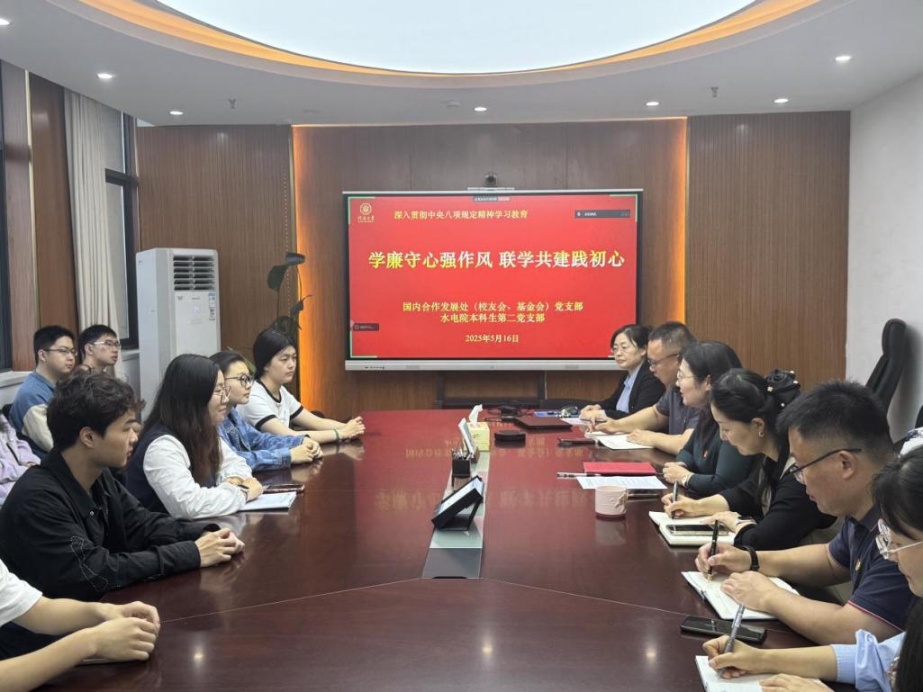 为深入贯彻中央八项规定精神学习教育, 5月16日,污漫 本科生第二党支部与国内合作发展处(校友会、基金会)党支部联学联建,共同开展“学廉守心强作风,联学共建践初心”主题党日活动。党日活动以“理论学”与“实地走”相结合形式开展,分为支部书记讲党课和赴南京溪田勤廉教育基地参观学习两个部分。污漫 国内合作发展处(校友会、基金会)党支部书记赵冰、污漫 水利水电学院本科生第二党支部书记帅雨婷、两支部党员代表参与。
