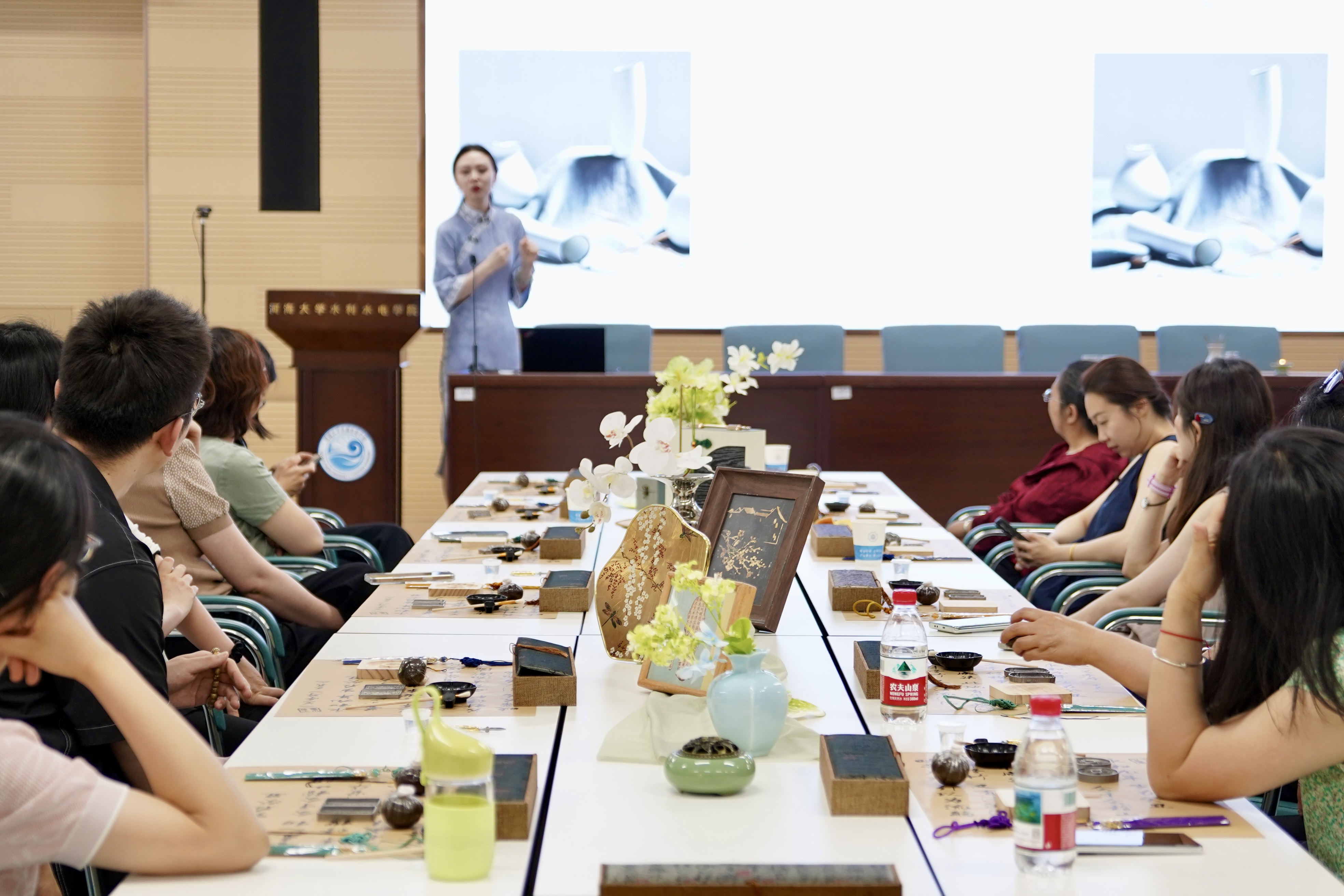 活动伊始,资深香道老师从容展演传统制香技艺。案几之上,香粉细腻,工具精巧。老师巧手翻飞,称量、配伍、调匀、成型,动作行云流水,气韵沉静专注。顷刻间,一枚枚凝聚自然精华的香牌雏形初现,馥郁清芬随之在空气中悄然弥漫开来,令在场教师无不屏息凝神,零距离感受这份流转千年的匠心与雅意。
