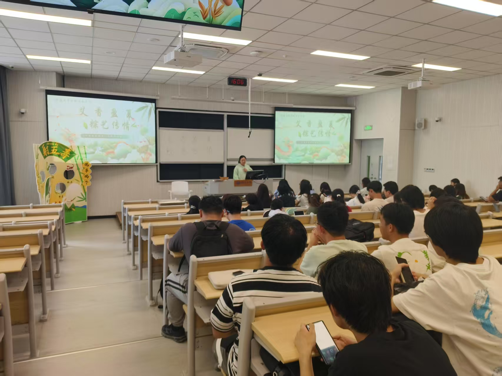 青叶传古韵,素手结安康。活动志愿者将提前准备好的粽叶、糯米、各色馅料以及细绳摆放在教室,同学们根据指引折叶、填米、捆扎,形态各异的粽子在略显生疏又充满热情的手中诞生,迅速将现场的欢乐氛围推至高潮。