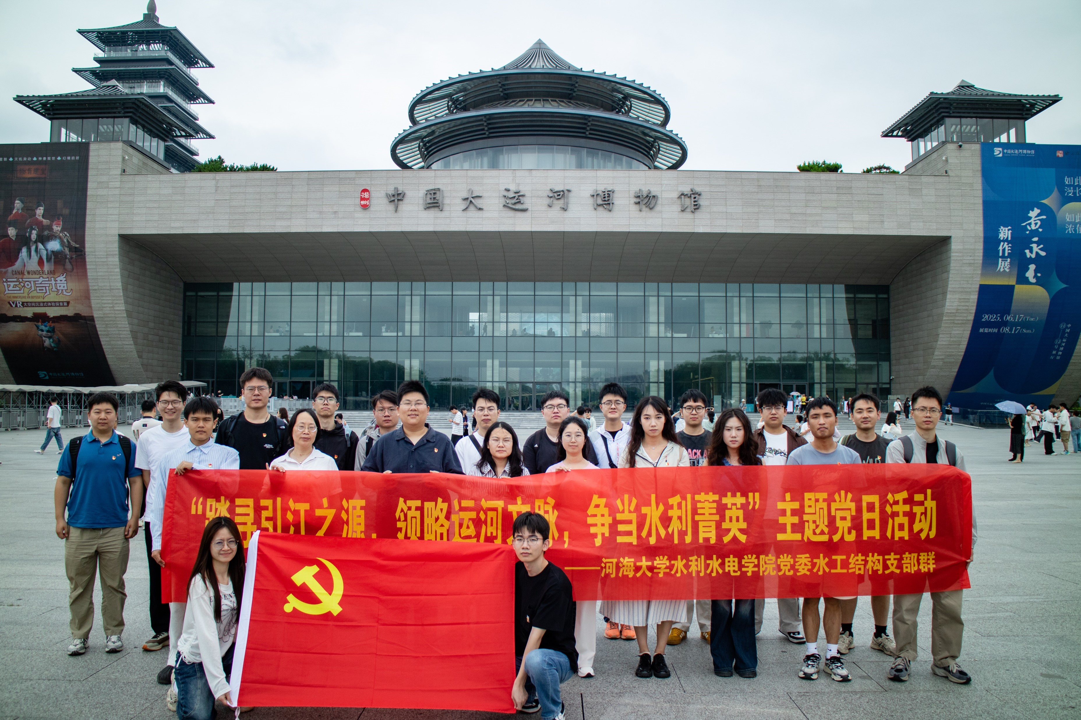 为深入学习习近平新时代中国特色社会主义思想和党的二十大精神,追寻习近平总书记足迹,强化党员理想信念与使命担当,6月24日,污漫 党委水工结构支部群(教师党支部、博士研究生第一党支部、博士研究生第二党支部、博士研究生第三党支部、硕士研究生第一党支部、硕士研究生第二党支部)组织开展“踏寻引江之源,领略运河文脉,争当水利菁英”主题党日活动。