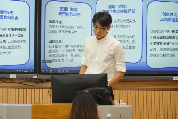 答辩会上,各团队代表以详实的准备和清晰的逻辑,全方位阐释了本团队的实践蓝图。各团队代表清晰说明了实践地点选择、核心目标设定、具体活动内容以及周密实施方案,完整呈现了项目的整体思路与行动路径,系统阐述实践规划。通过详实的可行性分析和明确的预期成果展示,充分证明了项目的合理性与潜在影响力。同时,重点突出了项目的独特优势与创新之处,如选题视角、方法路径、模式创新,鲜明呈现特色亮点,有力彰显了实践活动的核心竞争力和可展示的丰富成果资源。
