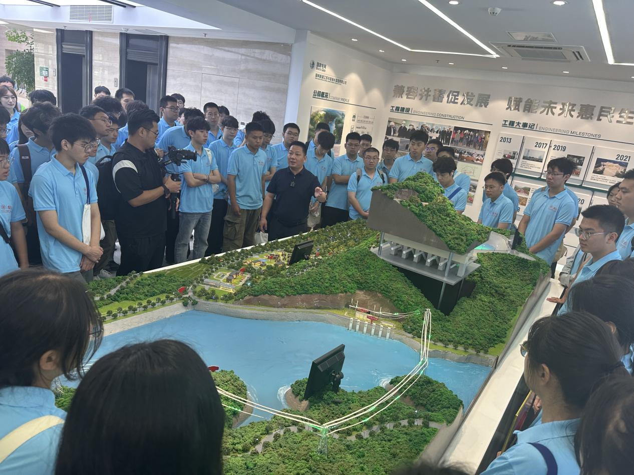 实践现场,水电站工作人员详细介绍了电站的建成历程、当前规模以及运行原理,带领同学们实地参观上水库、下水库等枢纽工程。同学们全神贯注,认真记录每一个关键信息,并积极与工作人员交流探讨。各班班导师也结合自身理解作出进一步解释,帮助同学们将实际工程与专业知识联系起来。在热烈的互动中,大家对抽水蓄能电站的工作原理有了更为深入、透彻的理解。