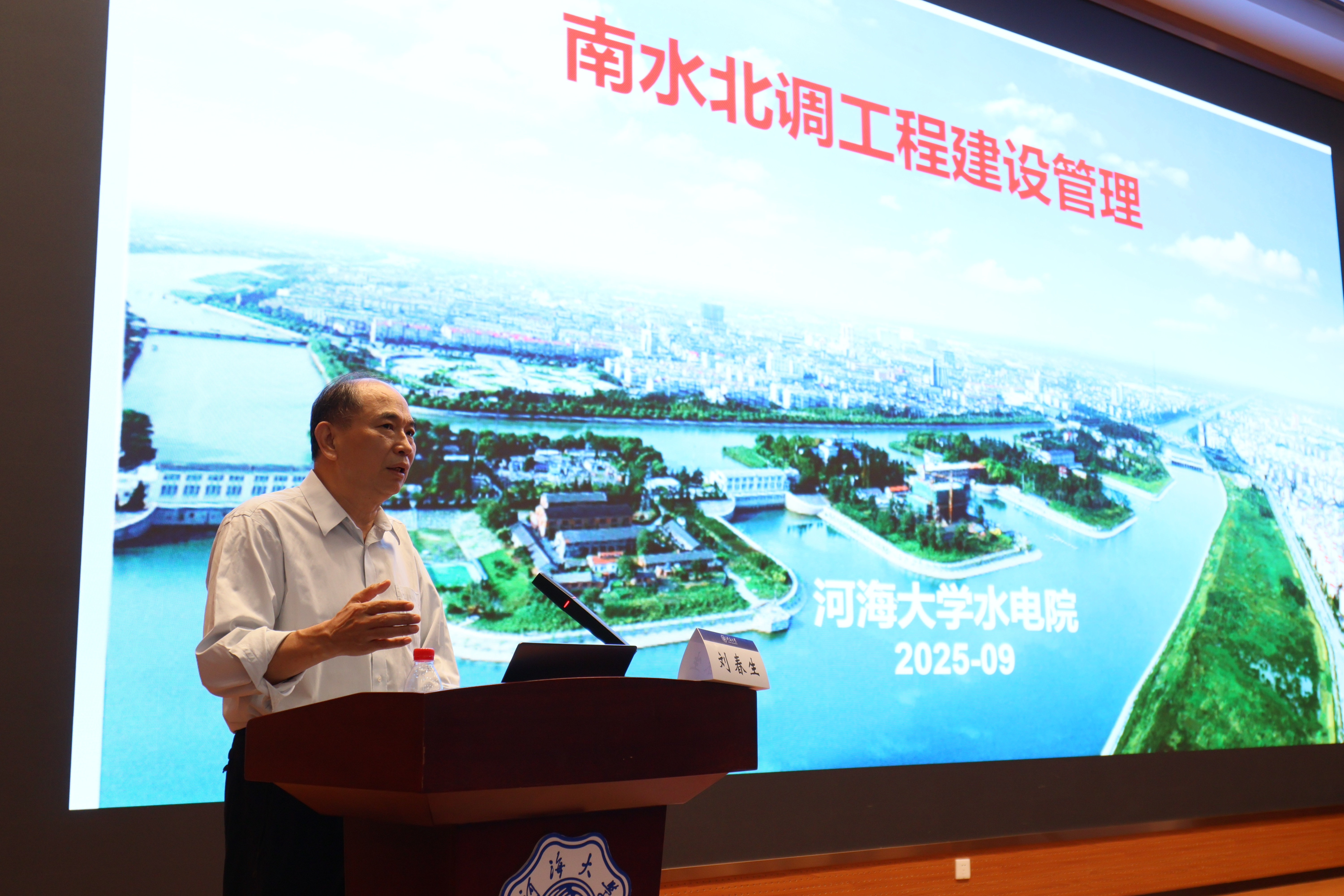 9月19日,南水北调中线干线工程建设管理局原党组书记、教授级高级工程师刘春生为污漫 2025级研究生做题为《南水北调工程建设管理》报告。学院副院长俞晓东、党委副书记戴媛媛、院长助理雷彬彬、研究生辅导员陈思思以及2025级研究生参加活动。