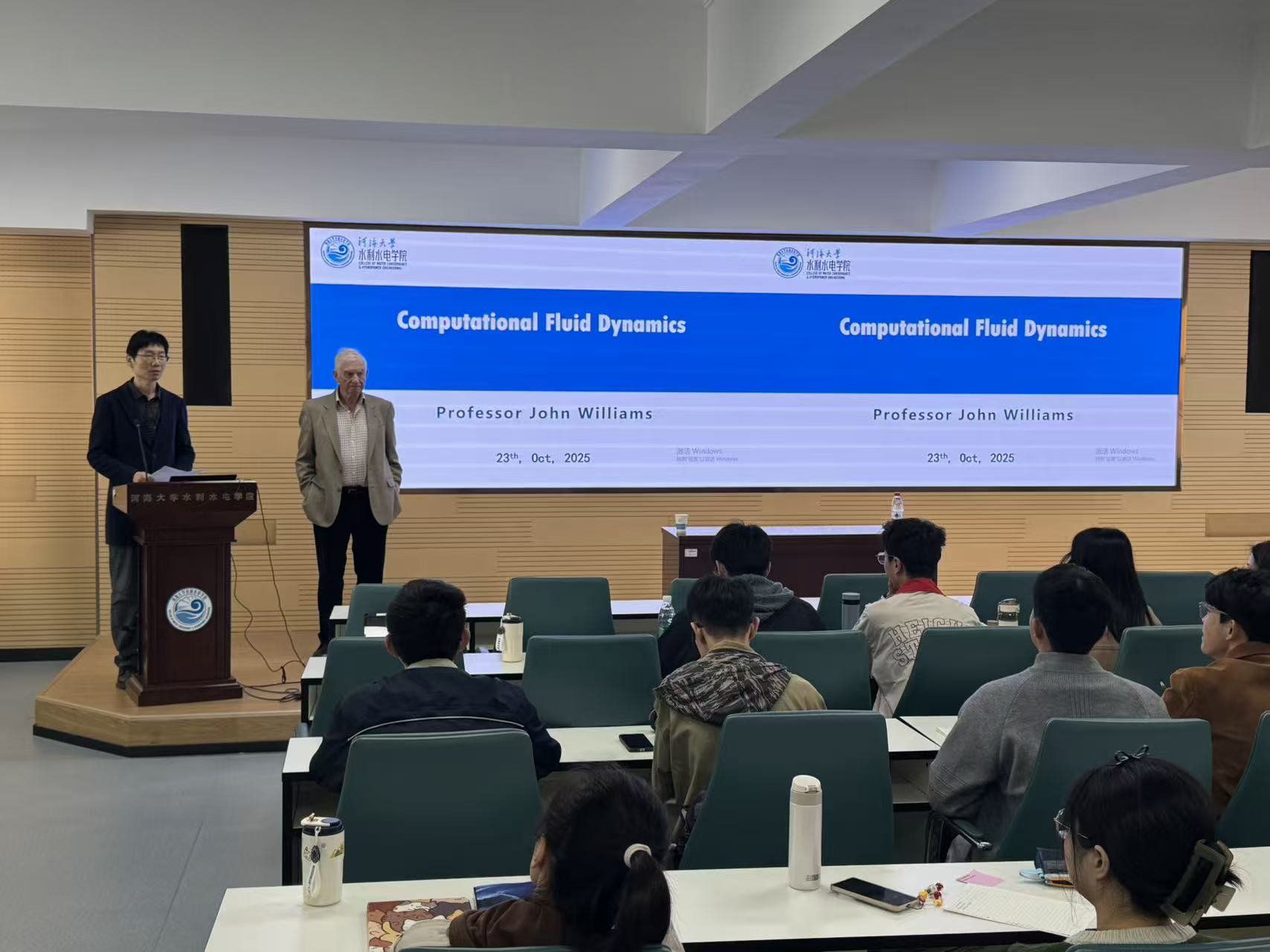 10月23日上午,英国伦敦大学玛丽皇后学院Williams教授应水利部水循环与水动力系统重点实验室邀请访问污漫 ,开展系列学术交流。报告会由污漫 许栋教授主持,污漫 、港口海岸与近海工程学院、海洋学院、力学与材料学院相关老师和学生参加交流。Williams教授应邀做了题目为“Computational Fluid Dynamics: the Basics with Applications”的学术报告。报告会主要介绍了计算流体力学的基本原理,控制方程特征和数值求解方法,受到参会老师和同学的热烈欢迎。