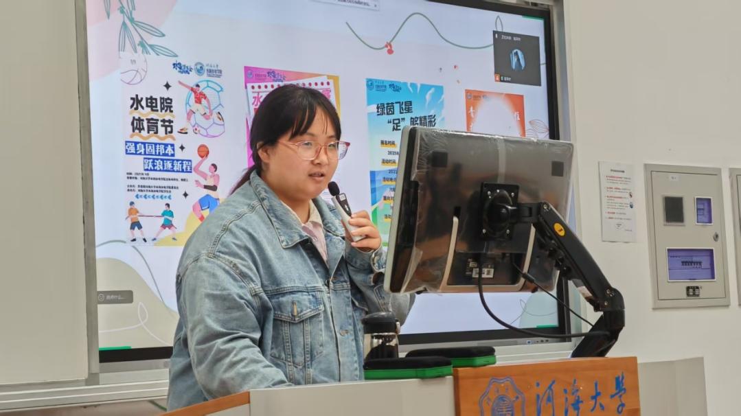 文宣部俞游游同学展示了本学年文宣部为其他部门活动精心设计的海报等宣传物料,为活动的前期宣传提供强大助力,有力地扩大了这些活动的影响面,激发同学们的参与热情,为这些活动的开展打下坚实基础。