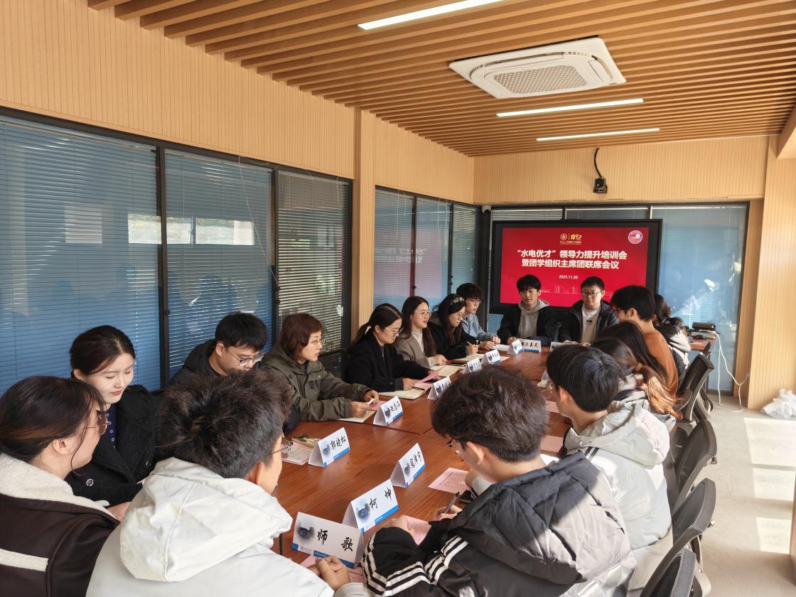 为进一步加强污漫 学生骨干队伍建设,提升各团学组织负责人的领导能力与综合素质,促进各组织间的协同联动与工作交流,11月19日,污漫 召开2025年“水电优才”领导力提升培训会暨团学组织主席团联席会议。学院党委副书记戴媛媛、院团委书记笪步源、2023级本科生辅导员帅雨婷、研究生辅导员赵志涵出席会议,院团委、学生会、研究生会、学生科协、青协、传媒中心主席团成员共同参加。