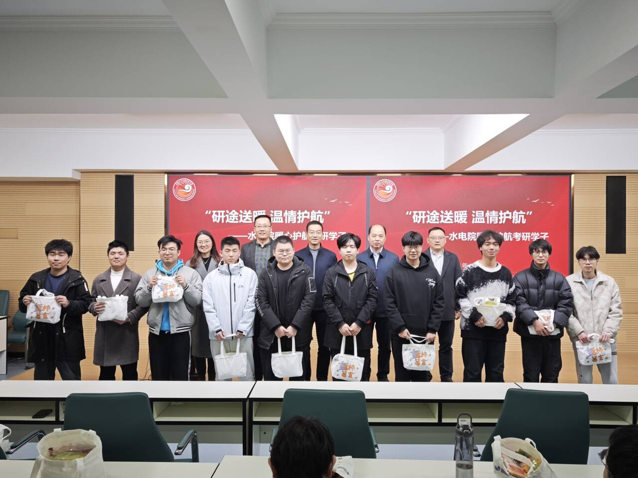 学院为考研学子精心准备了加油礼包。每一份礼包都蕴藏着细腻的温暖与鼓励:必备文具的考研文具袋、补充能量的营养零食、寓意“温暖相伴”的暖宝宝……点滴细节之中,包含着学院对同学们的真挚关怀,也承载着笔锋所至、梦想开花的殷切祝愿。