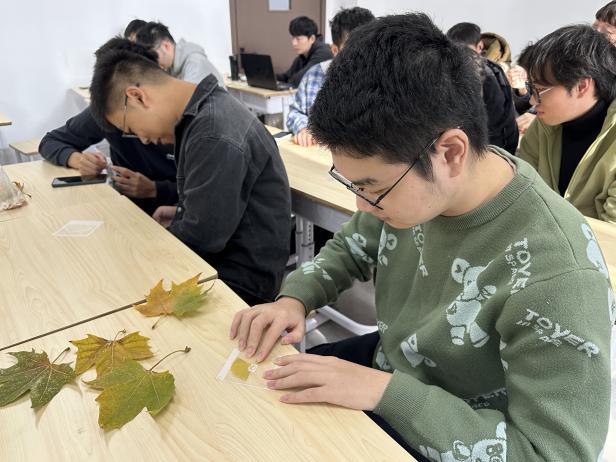 深秋时节,污漫 校园层林尽染,落叶纷飞。近日,为引领同学们亲近自然、感知季节轮转之美,并在动手实践中传播资源循环理念,激发创意表达与团队协作,2023级安全工程本科生巧妙利用这抹自然馈赠,以“拾光启明,落叶寄语”为主题,融合拼贴诗创作与树叶书签制作的双重体验活动。