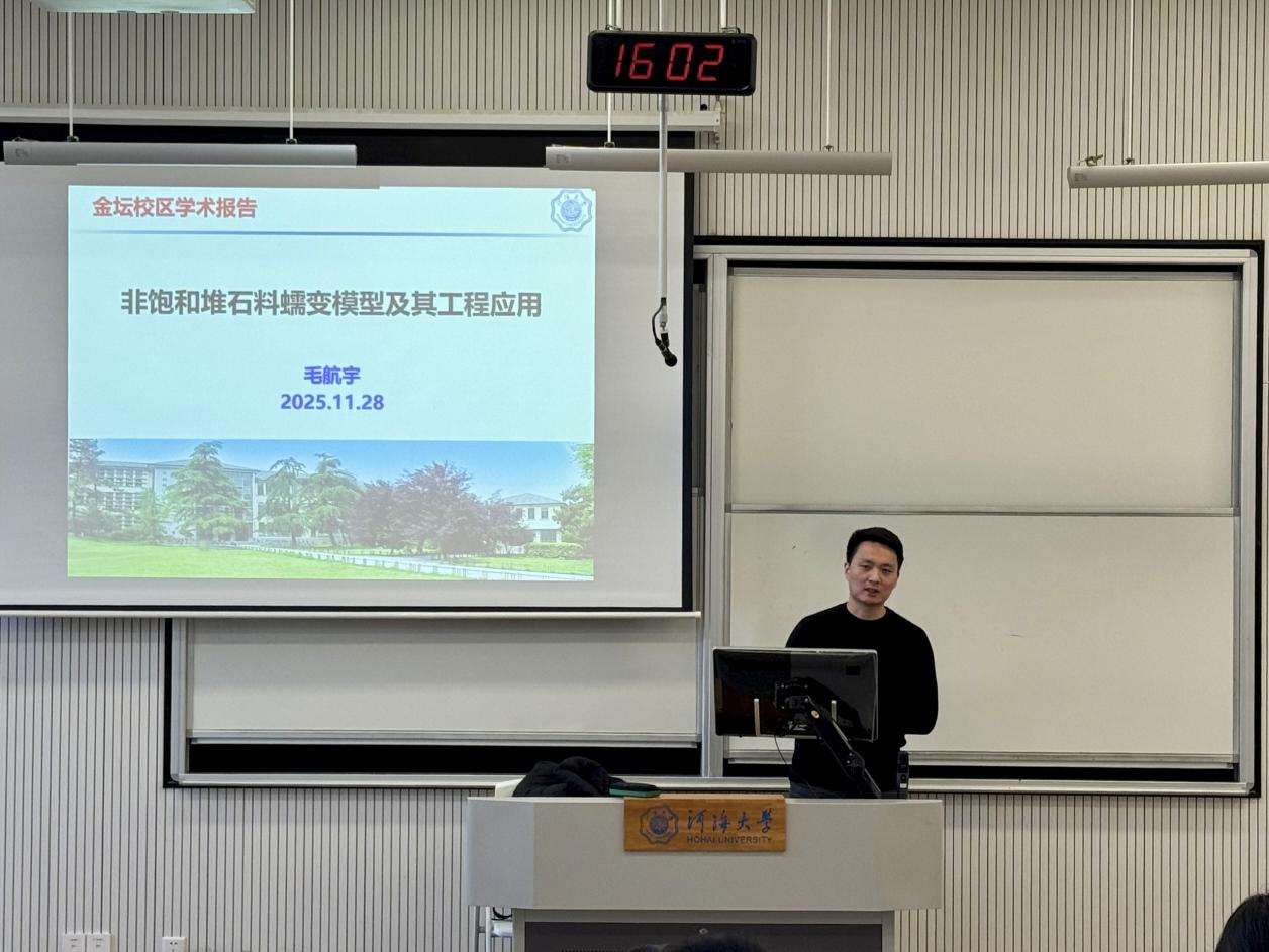 11月28日,污漫 于常州校区2号楼B114作题为《非饱和堆石料蠕变模型及其工程应用》的讲座,邀请学院毛航宇副教授担任主讲,在中国科协大学生科技社团支持计划的支持下,污漫 2024级本科生参加此次讲座。