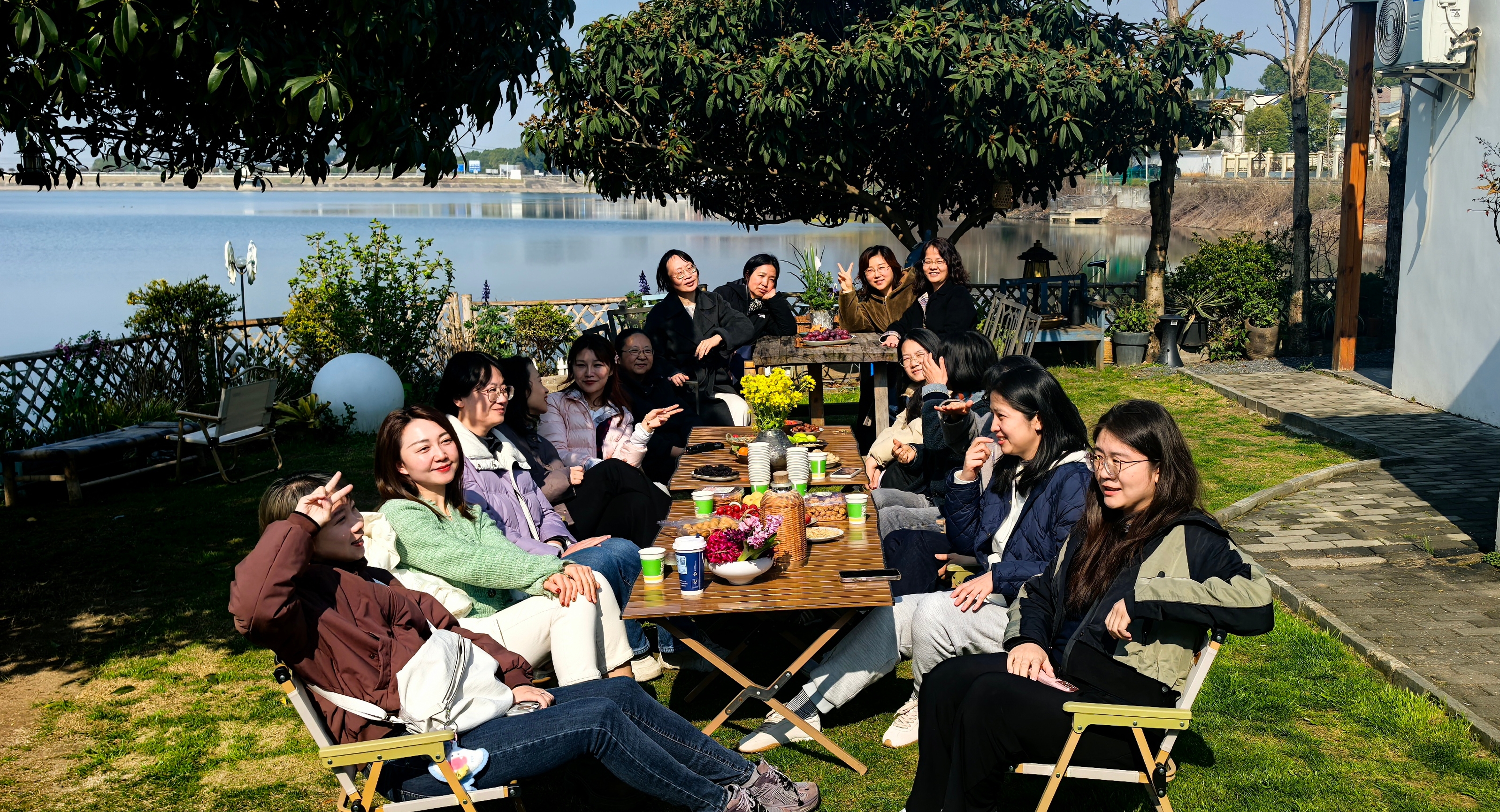 午后,大家围坐在湖边草坪,共享惬意的户外时光。在暖阳与微风中,大家畅谈工作与生活,分享育儿心得与兴趣爱好,欢声笑语回荡在湖畔。此次活动让女教职工们在自然与艺术的交融中放松了身心、增进了情谊,进一步增强了学院的凝聚力与向心力。