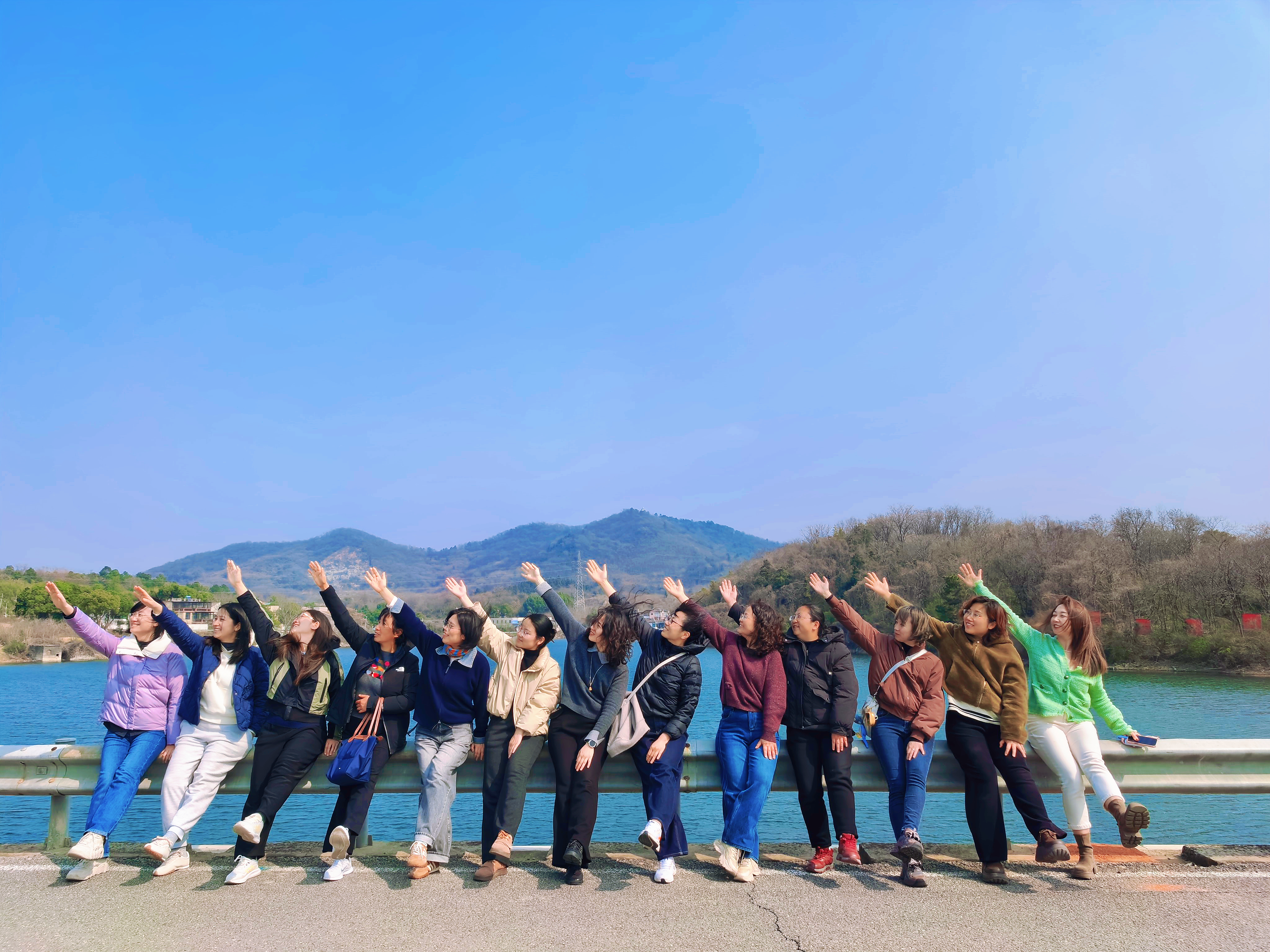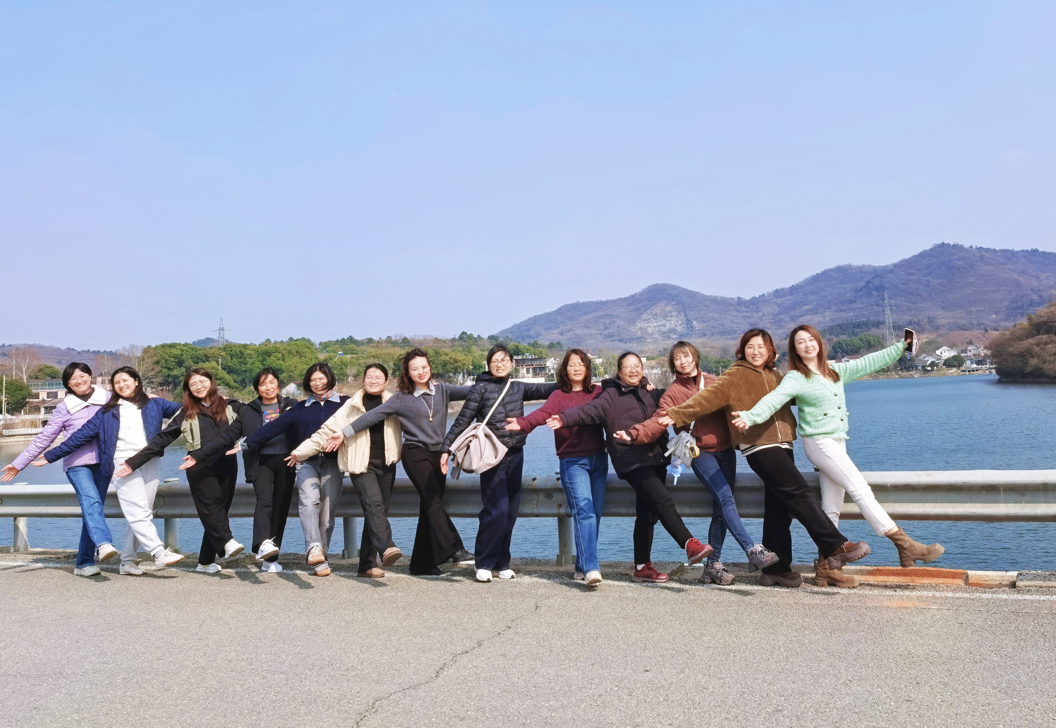 活动伊始,女教职工们结伴来到山水间,漫步于湖畔公路,在青山绿水间舒展身心、合影留念。大家或手牵手连成“人链”,或高举双臂拥抱蓝天,在明媚春光里留下了一张张充满活力与笑容的瞬间,尽显水电巾帼的飒爽风采。