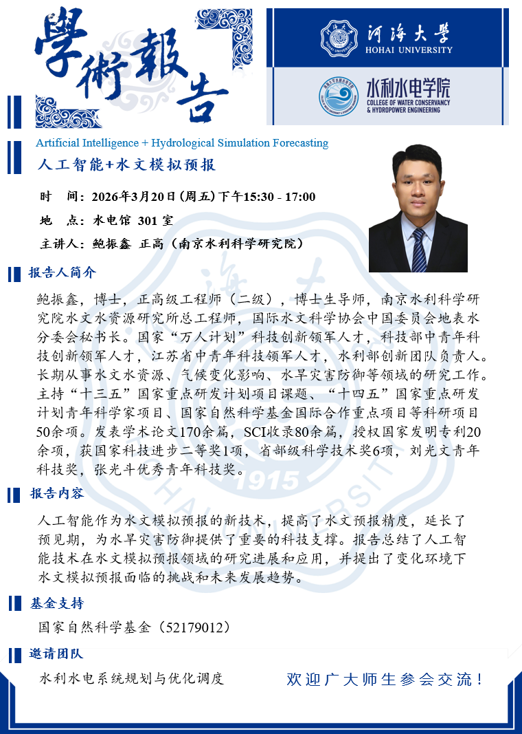 学术报告 | 人工智能+水文模拟预报